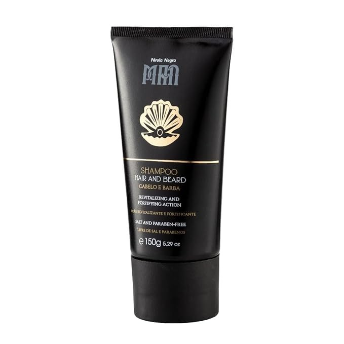 PÉROLA NEGRA Shampoo Hair and Beard for men, Revitalizing and Fortifying Action, Salt and Paraben-Free 5.29 oz